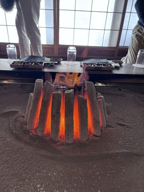 囲炉裏でじっくり焼かれた