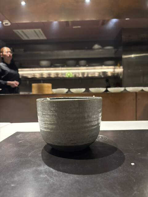 壺型の器に入ってて、一口食べたら蓋を閉めてネギに余熱を入れる。ネギの食感を楽しめる。