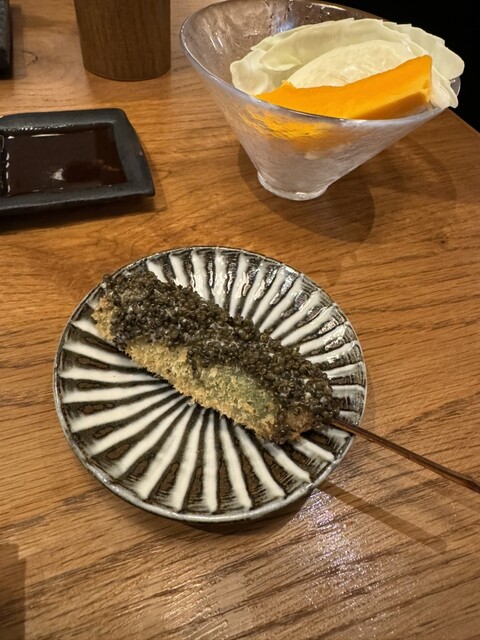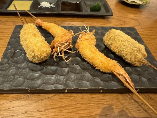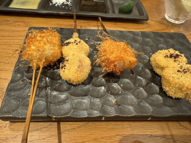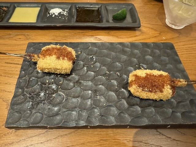ほんとは生カツみたいなやつ食べようと思って入ったんですが、串カツがセットでリーズナブルだったのでそちらを。串カツ何本か選べるのもそうだけど、最後までご飯とデザートついてくるのでめちゃくちゃお腹いっぱい。早い時間だったからか並ばずに入れたけど、普段夜行くなら予約あった方がいいかもですね
