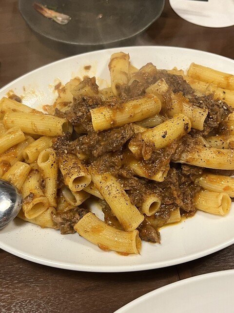 スパゲッティを二種類。牛すじを入れたものと、ナスのアラビアータ。海外生活が長かった同期が唸っていました。目黒から来た甲斐があったと。