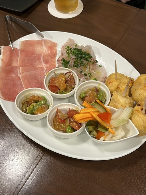 前菜の盛り合わせ(鰤のカルパッチョ、自家製生ハムなど)