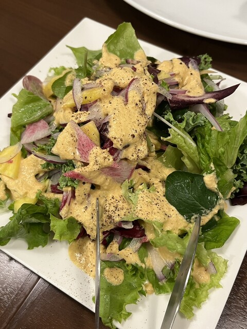 サラダは、野菜の鮮度が良く、ドレッシングがこれまた美味。