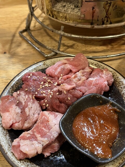 赤身、レバーともに美味。特に、レバーは生で食べれるくらいに鮮度抜群。新鮮なので、歯応えあり。これをレアに焼いて、タレと味噌で味比べしながら食す。嬉しい限り。幸せ。塩で食べる選択肢もあったが、高血圧のため回避。
