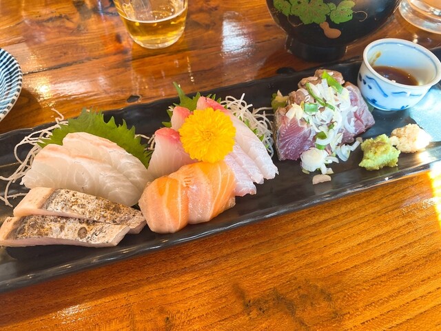 ランチ時間は定食はありませんがグランドメニューとおすすめから注文できました!とっても美味しいです!個人的おすすめはネギ焼き(写真なし)とさし盛りと生搾りサワー系知り合いにおすすめできそうです!ご馳走様でした!