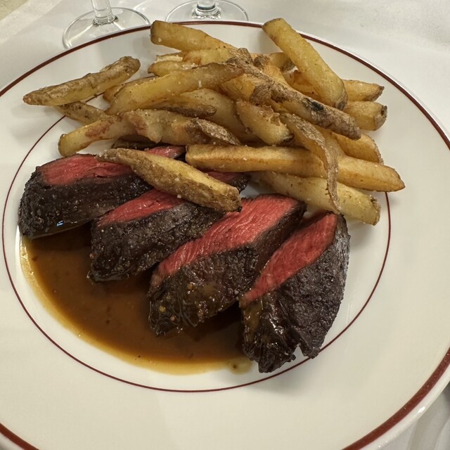 メインのオングレステーキがとても美味しかったです。分厚めですがナイフでスッと切れるくらい柔らかかったです。秘伝のマダラソースがお肉だけでなくポテトとの相性も抜群でとても美味しかったです。ポテトは外はカリッとしていますが中はトロッとした食感でした。