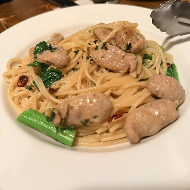 イベリコ豚と菜の花のペペロンチーノ