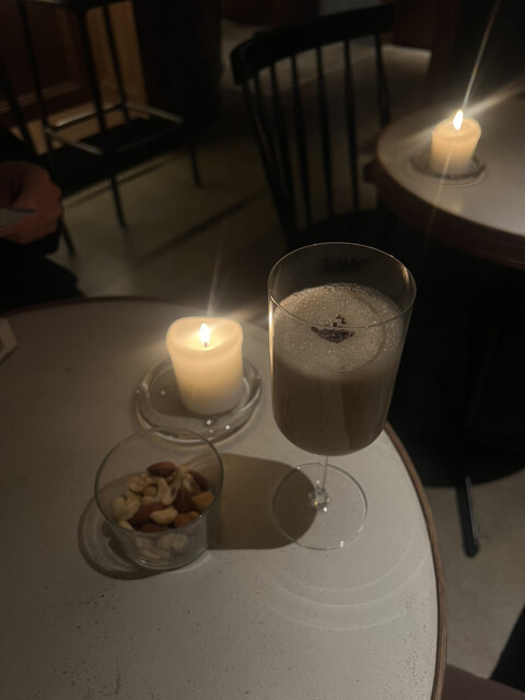 夜利用で、モカシェイクとナッツを注文。炭の効いたナッツが美味しい。