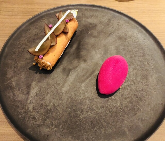 赤紫蘇のアイスは、めちゃ爽やかで締めに持ってこいです。ラングドシャに長野パープルを乗せた一品は、できたてでサクサクのラングドシャとジューシーなパープル、旨過ぎます。