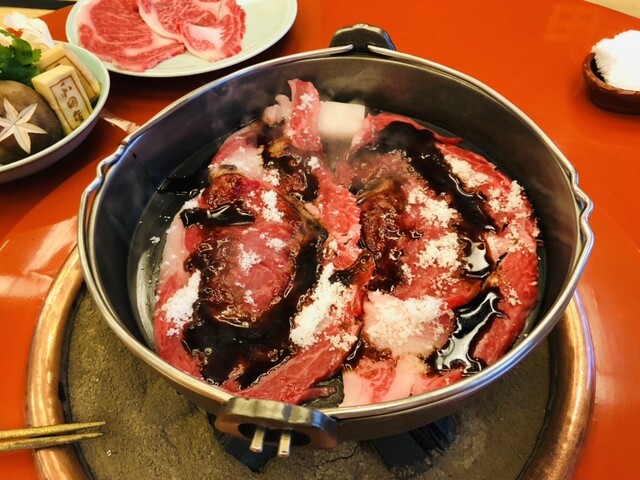 ・寿き焼 竹コース(17300円)と追加肉(12500円)とウーロン茶(580円)を注文。お出迎えから調理まで至れり尽くせりのおもてなし。おもてなしの心が全員徹底されています。そして、寿き焼は炭火で鉄鍋を温めているため、火入れが抜群!松阪牛の美味しさを最大限に引き立てる味付けに焼き上げ、感動するくらい美味しくて、ずっと『美味っ!』を連呼していたら、給仕さんが笑みを浮かべていました。そして、ついつい追加でお肉を注文してしまい、お腹も心も大満足!ホント美味しかったです!ごちそうさまでした♪