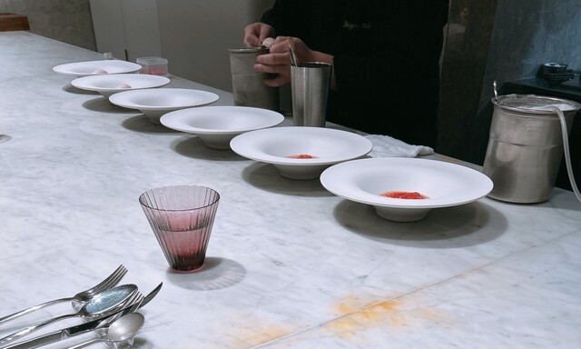 今回は間にニューディーというラビオリの中身であるパスタが入っていて、甘味と塩味のコントラストが楽しいコースでした!