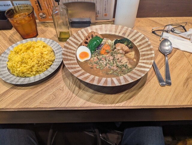 前回、骨付きチキンいかせて頂いたので、今日は、ポークと野菜のスープカレーをオーダー。
