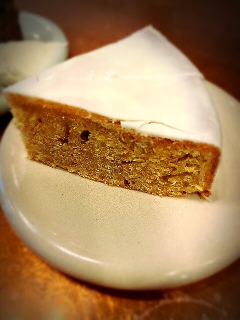 休日のランチの時はいつも行列のこちらのお店。やっと初訪問できました。席数が少ないのと特に時間が決まってるわけではないので、場合によっては回転が悪いかもしれません。11時過ぎに到着でちょうど満席だったので、外で待つこと15分。着席前にレジでオーダー&お会計です。ランチを頼んでも、ワンドリンク制でした。今回はツナのサラダボウルとフォカッチャをオーダー。ドレッシングはりんごの風味香るさっぱりフレンチベース。上に乗ってるツナは自家製なのかな?缶詰ではないのか?しっかりマグロの味が感じられるフレークで、添えてあるレモンを絞って味変できます。お野菜も新鮮でなかなかボリュームもあり美味しかったです。フォカッチャも持つとずっしり重さのある、見かけよりもお腹いっぱいになる感じ。味もハーブの香りがして、サラダとばっちりでした。友達は本日のスープをオーダーしましたが、本日はポークと生姜のトマトベースのスープ。食べるスープという感じで美味しかったそうです。食後のデザートは、キャロットケーキとアップルジンジャーケーキをオーダー。友達とシェアしたかったので、半分に切っていただきました。キャロットケーキはクリームチーズのようなものが添えられていて、そのままでももちろん美味しかったですが、一緒に食べるとまた風味があって美味しかったです。キャロットの自然な甘みとクルミがアクセントになって、パクパク進みました。アップルジンジャーケーキの方は、小ぶり?と思いましたが生地がバームクーヘンのようにぎっしりしているので、食べ応えありました。りんごと生姜の味がそれぞれしっかり感じられつつ、調和が取れていてこちらも甘さ控えめでヘルシーで美味しかったです。デザートは甲乙つけ難い感じ。今度はまた違うものを頼んでみたいです。