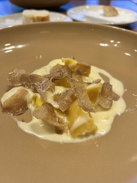 白トリュフが入荷したというので、5,500円追加して、削った白トリュフをリゾットにかけてもらったが、この量で5,500円なら、都内のレストランの価格に比べてかなりリーズナブルだと思う。