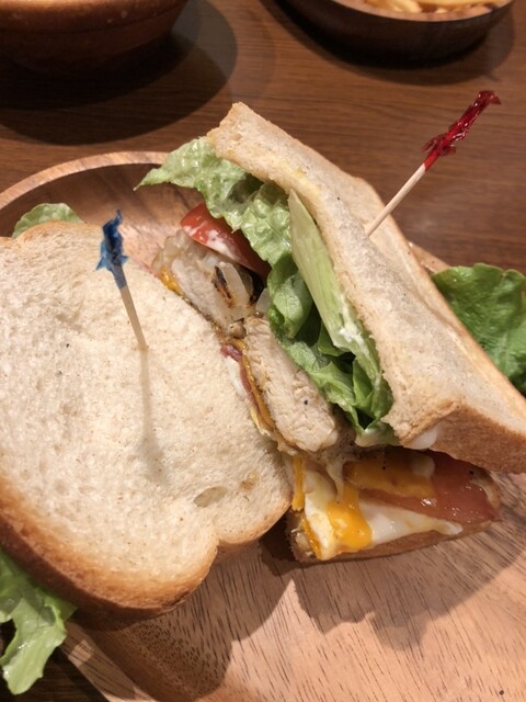 ポップコーンシュリンプL(15個)660円、アボカドバーガーセット(カイザーロール、グァバジュース、ハーフカット)1870円、クラブハウスサンドウィッチ1340円、+チーズトッピング(チェダー、クーポン)。今日は焼き加減は丁寧。フレンチフライはカリッとして美味しかった。いつも最高のハンバーガーをありがとう!写真はどう撮っても、いつも美味しそうじゃないんだよなぁwww