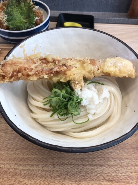 ちくわ天ぶっかけ冷600円+中(1.5玉)100円、えび天丼490円。ぶっかけツユは今日はちょっと塩味が多め?飲み干せなかったなぁ。
