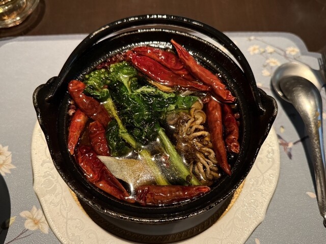 鷹の爪や山椒が大量に入っているが辛さは優しめ。