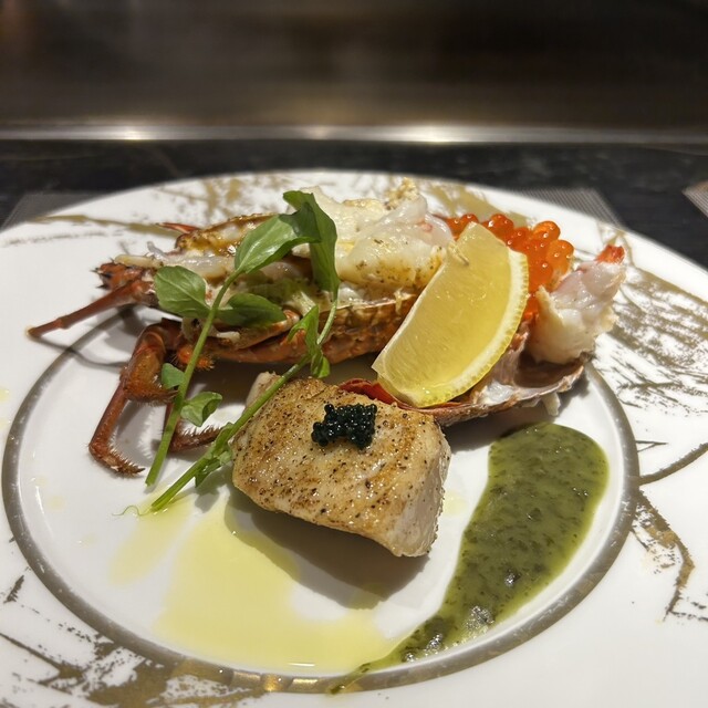 お次は目の前で伊勢海老と鰆の鉄板焼き