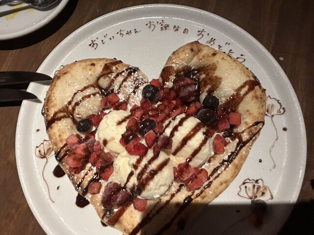 最悪の雨でしたがまごちゃん達にお祝いしてもらいました。料理も美味しくて パスタもピザもスイーツもみんな美味しかった。