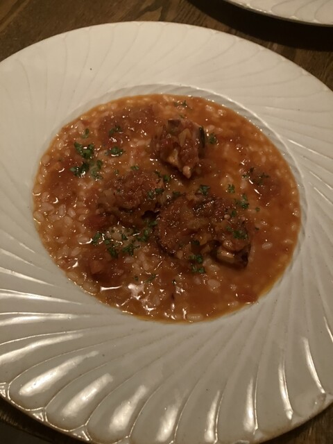 一皿目はウサギのブイィ、初めて食べるお料理。お粥のような料理で、パンをスープに浸すと聞いていたので、もっと食感がない感じかと思っていたら、しっかりとした食感で、ウサギ...