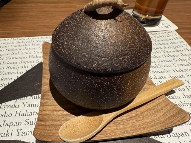 最初突き出しがでて、その後茶碗蒸し、お肉を焼いて頂いて、野菜、〆のうどん、デザートです!