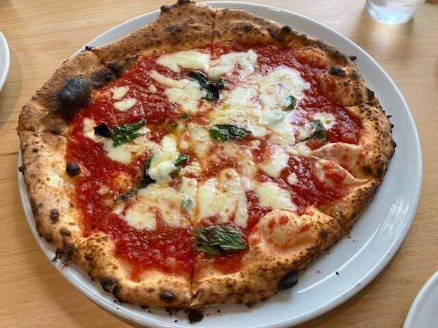 薪のピザ釜で焼いているので、生地の端まで美味しい。