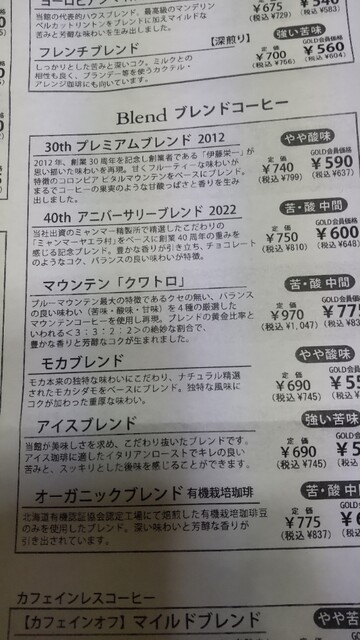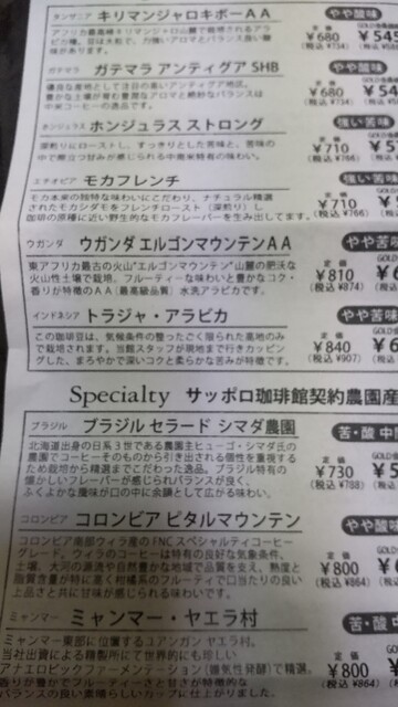 珈琲リスト。