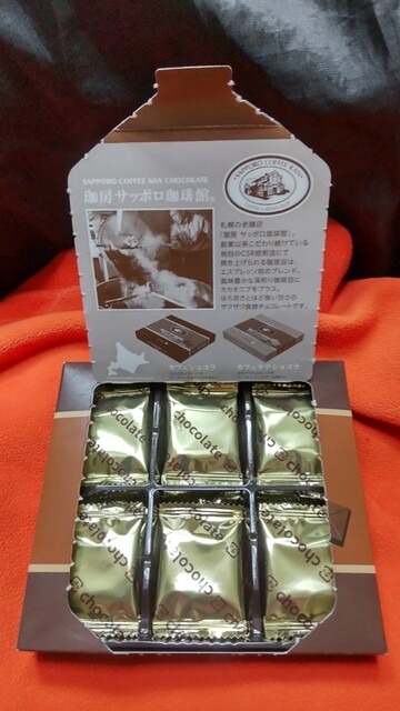【カフェショコラ】は、封を切ったら珈琲の香りが立ち昇り、チョコを食べてると言うより、ほんのり甘い珈琲を飲んでる感。