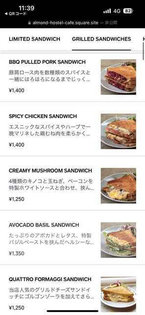 ・CREAMY MUSHROOM SANDWICH:1,250円(税込)