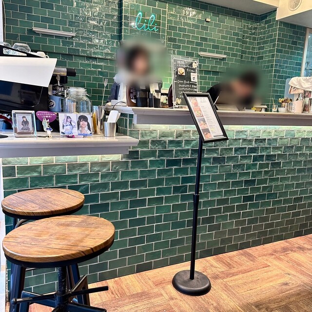 東通りの「TAKI BLDG」にあり、「lili」と書かれた丸い看板が特徴的です。