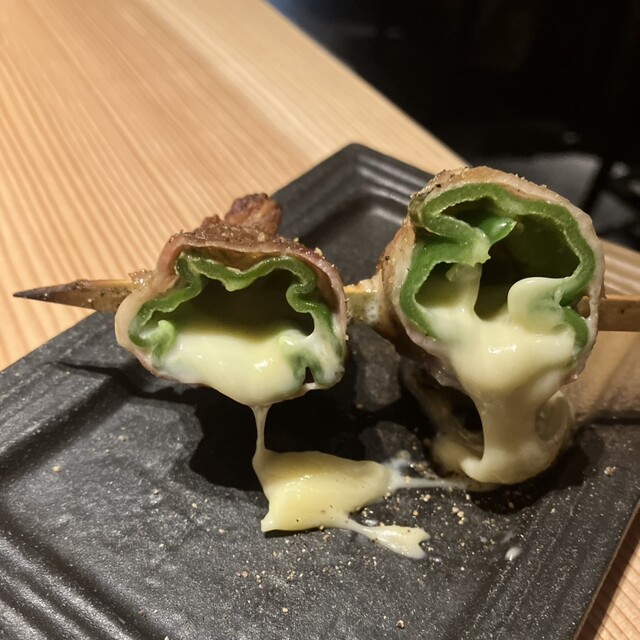ピーマンのシャキッとした食感に脂ののったお肉と、とろっとしたチーズが相性抜群。