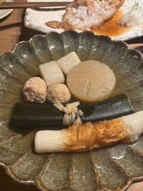 私のオススメはおでんの海苔と、アサリの出汁でとったしゃぶしゃぶ、西京焼きです。