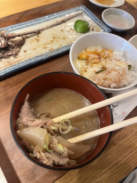 小鉢は安定に全部美味しくて、豚汁も具沢山で満足度高し◎ 半熟の温玉で卵かけご飯にしたらまぁ当たり前に優勝すぎた。