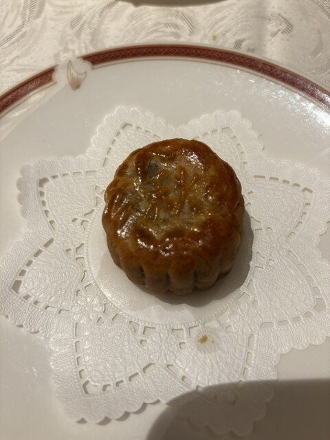 デザートの杏仁豆腐はクリーミー。真っ白な杏仁豆腐は定番だけど、ややベージュ色。きっとかなりのこだわりが詰まっているはず。そして、今日は中秋の名月ということもあり、シェフお手製の月餅もいただきました!名月万歳!