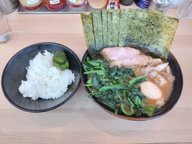 美味しいお店、トッピングにほうれん草と海苔5枚