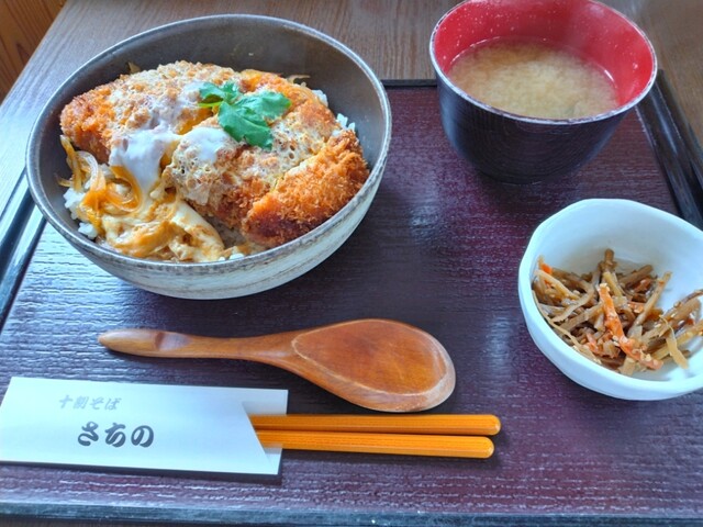 ロースカツ丼の大盛りに盛り蕎麦に生玉子