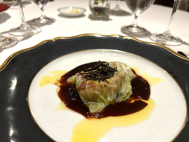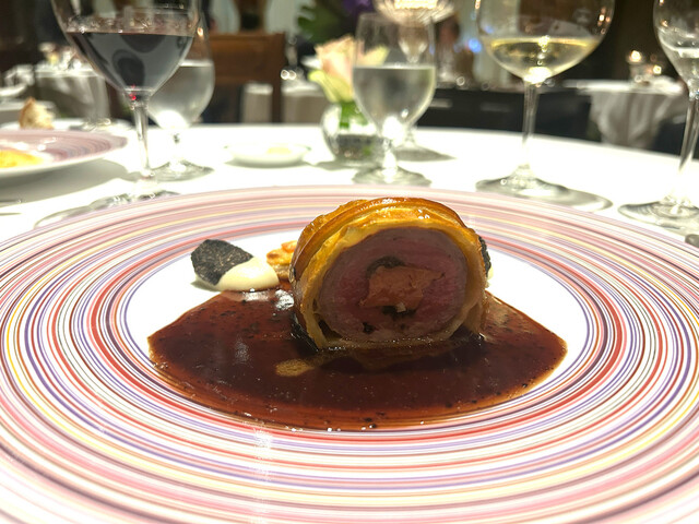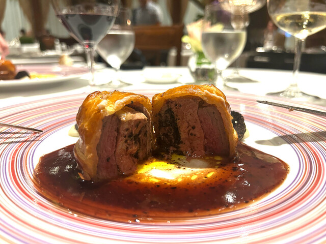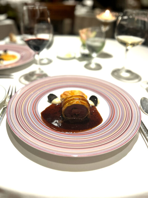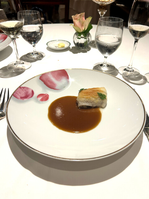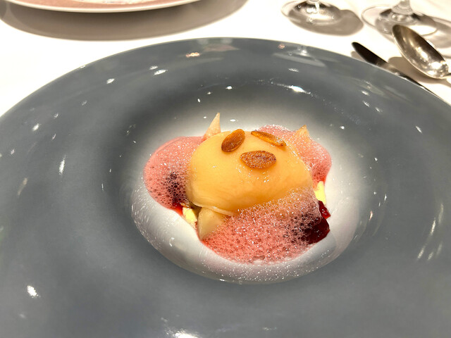 これを楽しみにしていました。長年スペシャリテとして愛されている通り、臭みのない柔らかい仔羊にフォアグラ、薄皮のパイ生地、どれをとっても完璧な采配で、これでもかと押し寄せる旨味の塊に負けそうになりながらも一口一口を噛み締めていただきました。