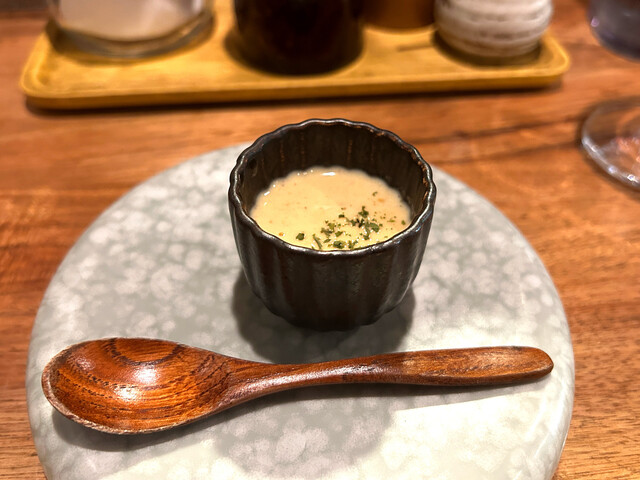 パスタのようなラーメンが濃厚なスープをしっかりと運んでくれてとっても美味しい、麺との相性も抜群です。これだけしっかり麺がスープに絡んでいるのを感じるのは初めてかも。味変のサワークリームはカナッペになっていて、スープに浸しても、つけて食べても、そのまま食べてもOKという自由度が高め。ビスクスープにしっかり浸していただきました。