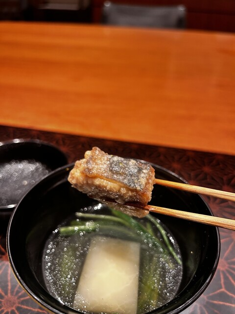 幕開けは焼きずわいに大好きな海老芋のお椀。海老芋のお椀には、これまた蟹身がたっぷりで三つ葉の香りがアクセントで上品!そして美味しい。お料理は全体的にテンポ良く、お椀ものもとても美味しかったです。