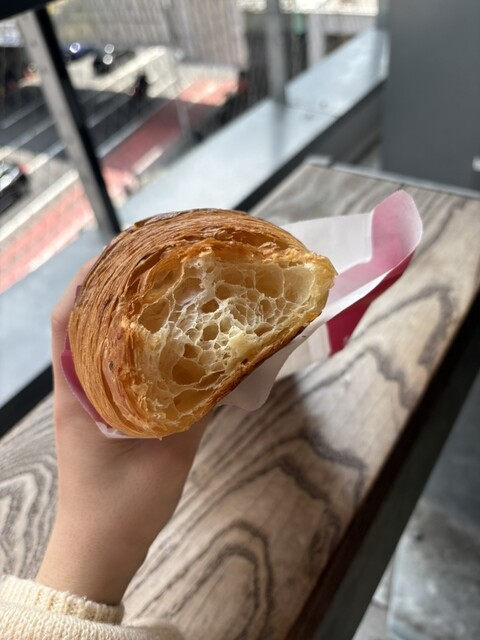 クロワッサンは、パリパリで中がふわっとしていて、後味のバターが濃くて本当に美味しいです。あたためなくてもこんなに美味しいクロワッサンは初めて出会いました。