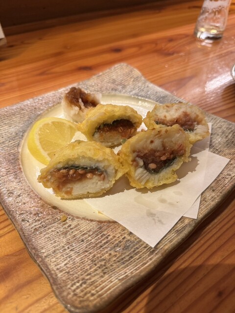 特に感動したのは、鱧と山芋ととろの梅しそ揚げ!外はサクッと中はふわとろで、し...