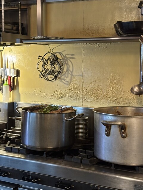中に入るとオープンキッチンを囲むようにコの字型にカウンター席があり、席の近くの扉から出てお手洗いに行けるどこでもドアのような作りでした。