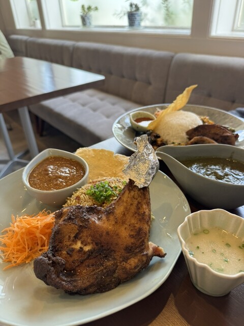 今回はビリヤニにチキントッピング、プレートカレーはタンステーキトッピングでオーダー。ビリヤニはスパイスの香りがしっかりして、ふんわりと炊き上がったバスマティライスが最高…!チキンもジューシーでスパイスの絡み具合が絶妙でした。