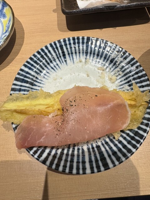 カマンベールやナスなどの定番ももちろん美味しかったのですが、特に印象に残ったのは「マンゴーの天ぷら」と「じゃがいも」。マンゴーは甘みと衣の香ばしさが絶妙にマッチしていて、デザート感覚で楽しめる一品。じゃがいもはホクホクで、中の甘みが引き立つような優しい揚げ具合でした。