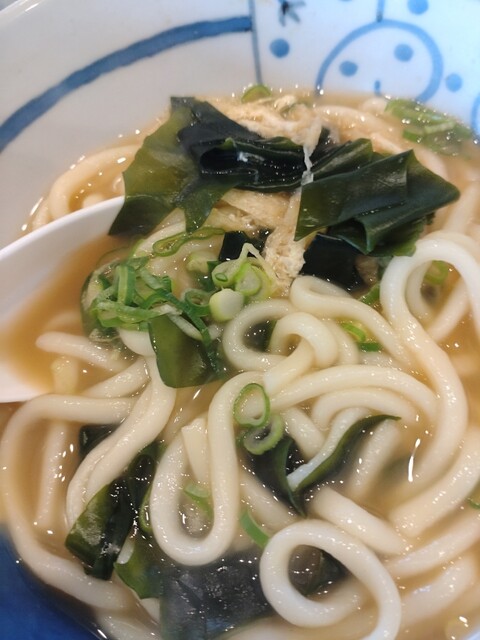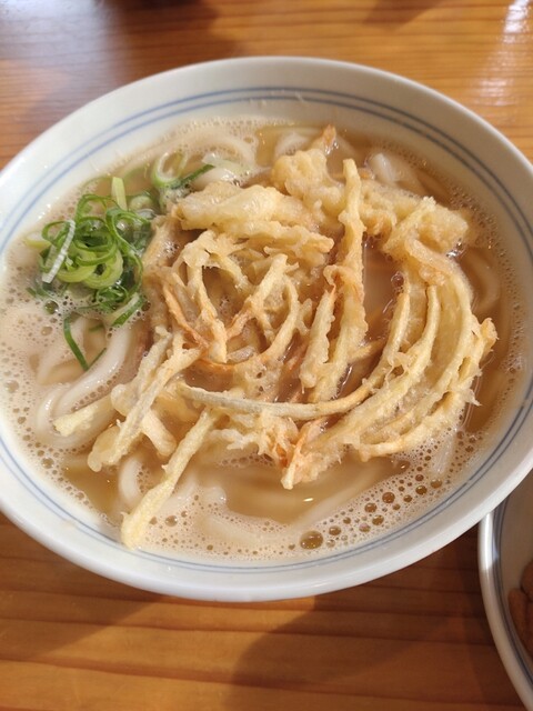 やわやわ麺をチュルチュルッと→麺がお出汁を吸っててウマ〜い!中盤から刻んだ鷹の爪(卓上の薬味)を入れて味変です。沈めていた丸天が見えてきましたよ。丸天をパクリ→柔らかくなっていて美味しいですね~!