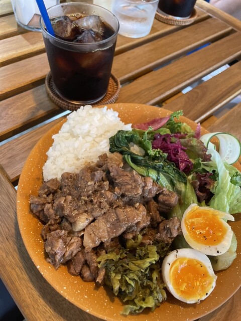 待つ事10分程でルーロー飯とラザニアのプレート、そしてアイスコーヒー(食事と一緒にと注文)が配膳されました。