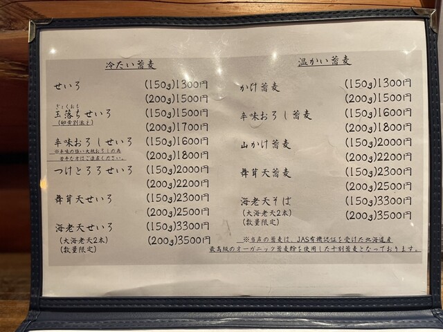 メニューを見て、食べたかった辛味おろしせいろと舞茸の天麩羅を確認し、注文しました。