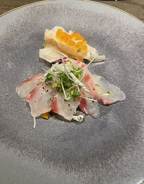 前菜の盛合わせ、カルパッチョ、サヨリのグリル、