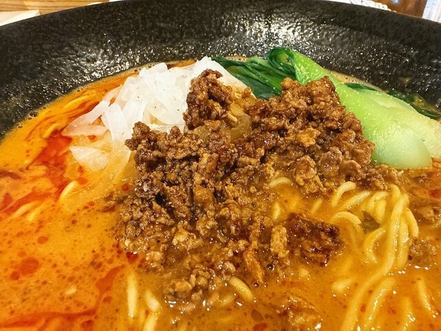 胡麻の香り、程よい痺れと辛さ、麺とスープが絡むコッテリさ、挽肉の美味さ