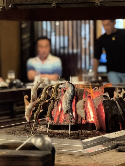 ・その日のおすすめ魚を、囲炉裏でじっくり焼いてくれるスタイル
