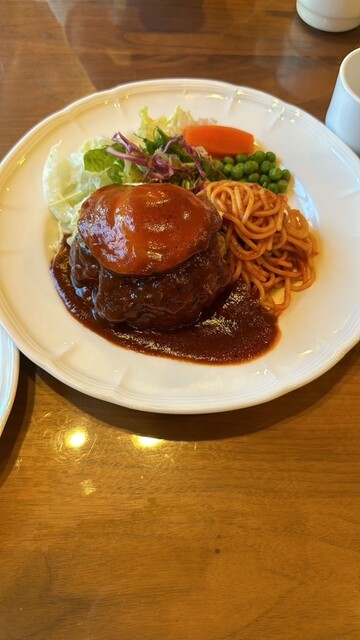 ハンバーグにかかっているデミグラスソースは少し酸味が効いていてとても美味しかったです。ナポリタンは昔ながらのという王道で美味しかったです。